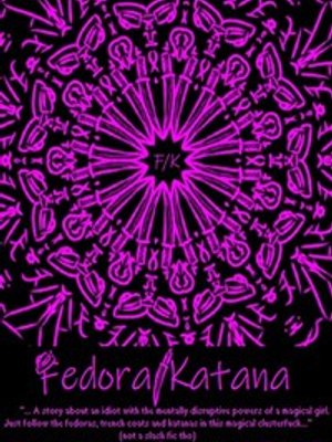 Subtitle in the cover reads:"... A story about an idiot with the mentally disruptive powers of a magical girl.Just follow the fedoras, trench coats and katanas in this magical clusterfuck...[not a slash fic tho]"