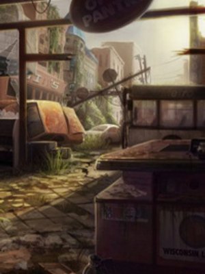 A weary scavenger living in a post-apocalyptic word enters a guttered little store, looking for supplies.