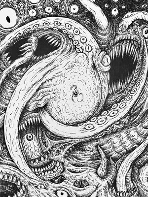Style: The fiction oozes style. Language is over-the-top, flowery. I do not mind so-called 'purple prose' as it is a nice refresher from curt, 'now this happens, now that happens,' styles of writing. The descriptions evoke Lovecraftian madness and horror-craft and do pull you into the increasingly bent reality of the book.