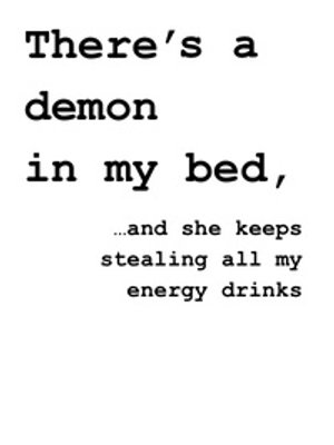 There's a demon in my bed and she keeps stealing all my energy drinks